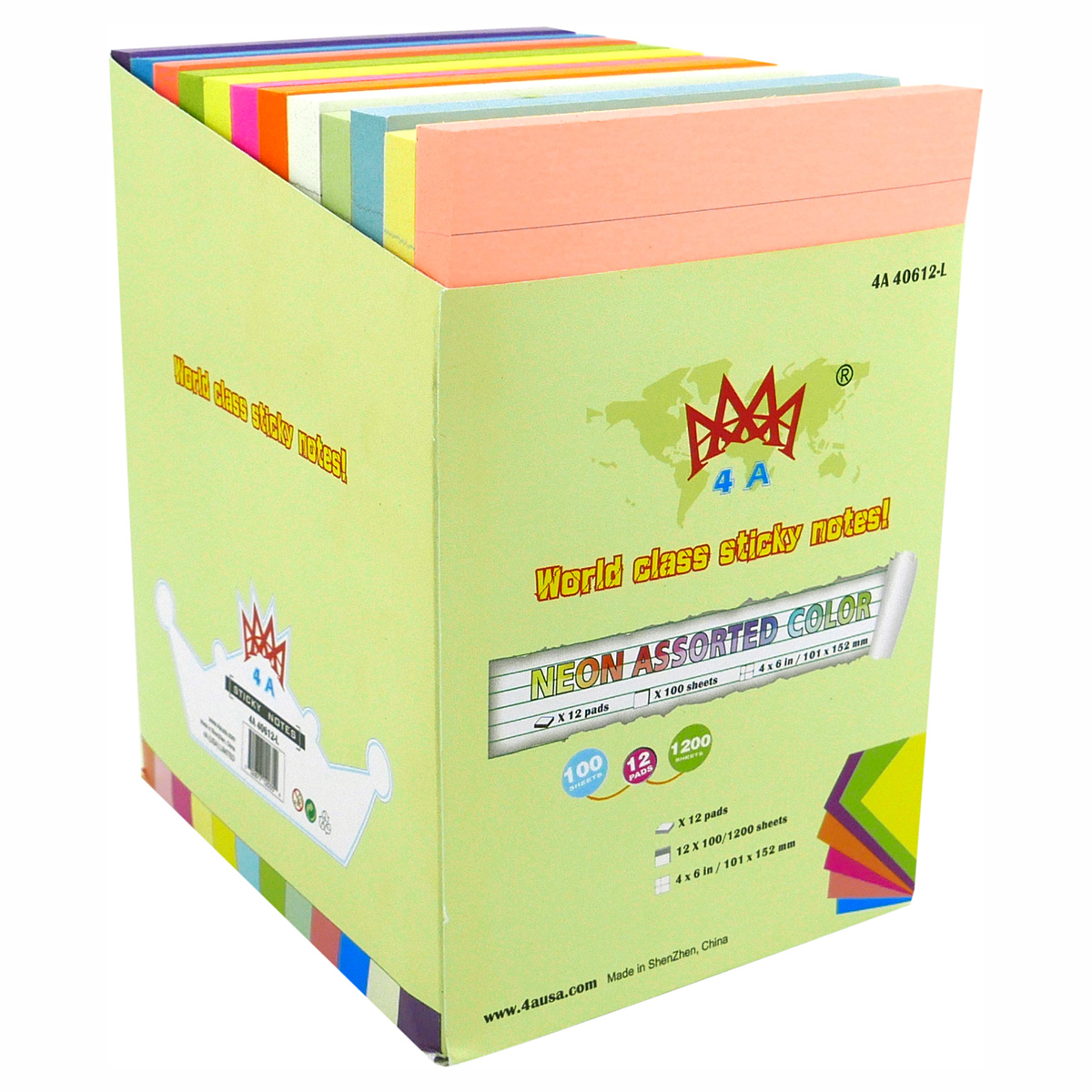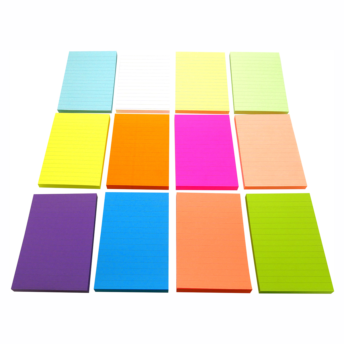 4A Sticky Notes,4 x 6 Inches,Lined,Neon Assorted,12 Colors,Self-Stick Notes,100 Sheets/Pad,12 Pads/Pack,4A 40612-L